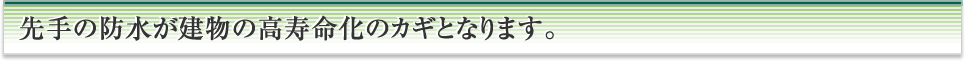 世界的にも建物寿命の短い日本ですが、少子高齢化の流れや素材・建築技術の向上もあり、徐々に寿命が延びてきております。健全な建物の維持管理には、「適切な防水」が必須です。